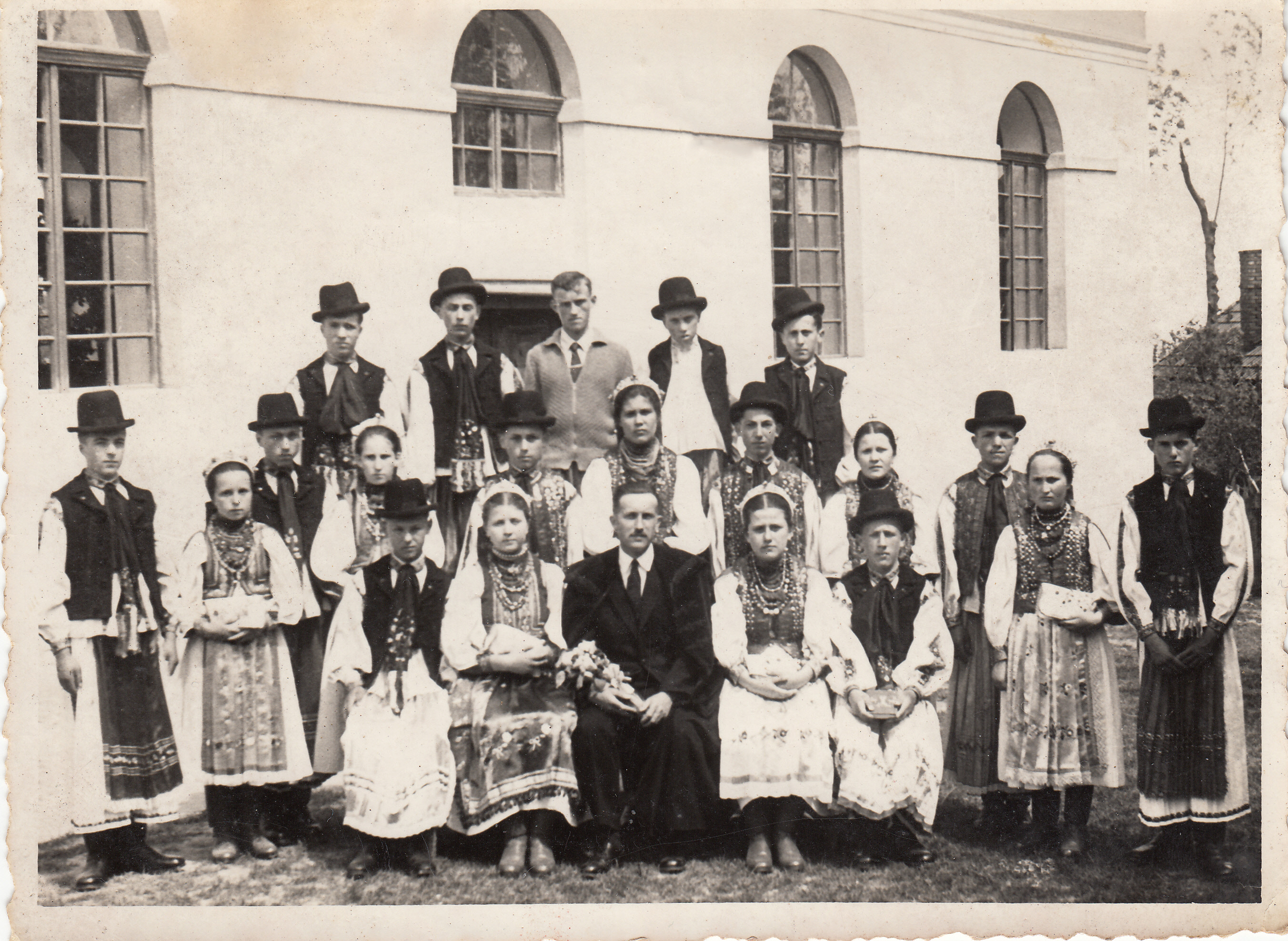 Konfirmációs csoportkép, rajta a gyűjtő nagyszülei