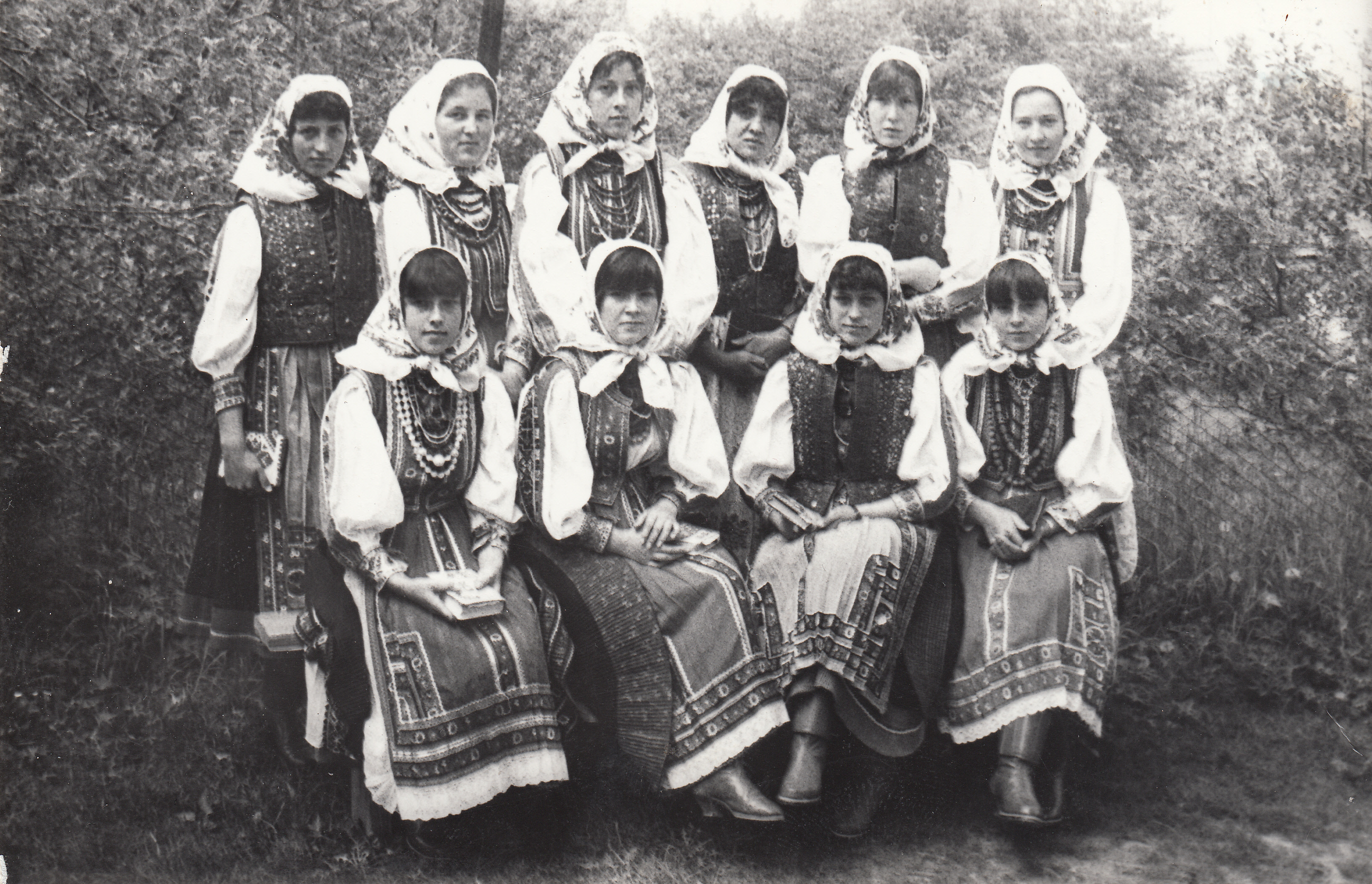 Fiatalasszonyok csoportkép, énekeskönyvvel